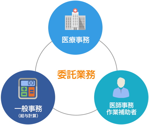 一般事務業務はもとより、医療事務業務や医師事務作業補助業務といった専門的な知識を必要とする業務の委託を請け負っております。